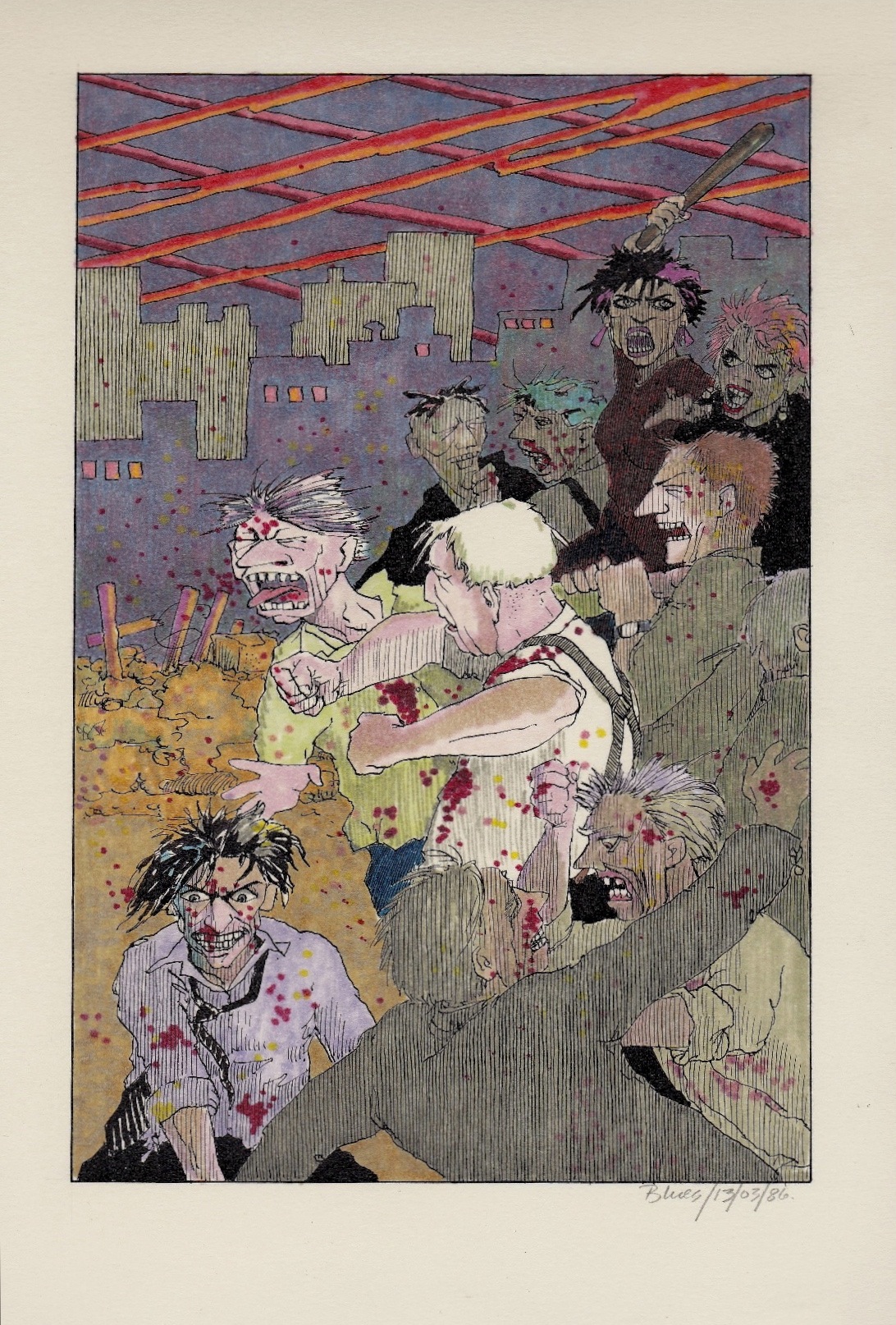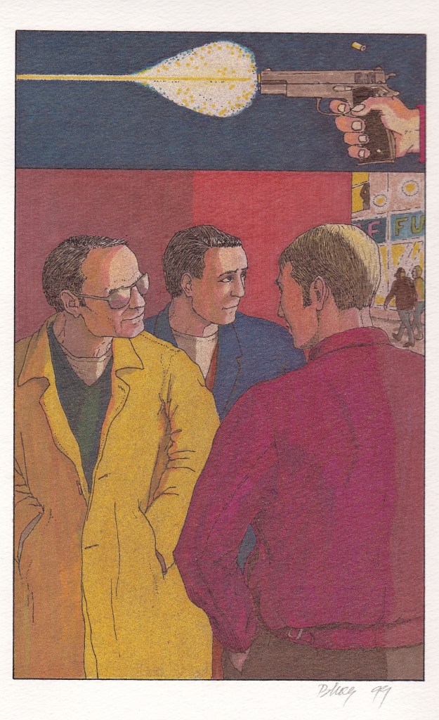 The music has become much more complicated, Intricate and twisted. You want to leave the theatre but you can’t. Just then the neighbour comes out of his house with an assault rifle (He’s an ex-soldier who lives alone and likes it that way). He listens to Frank Sinatra records on a vintage Bang and Oloffson Stereo and the noise from next door is a problem. Now…the music sound track has Frank Sinatra singing in the back ground and the neighbour in a bath robe with his AR 15 marching up the driveway. The Heroine screams and armoured van full of macho motherfuckers in coming around the corner half a block away. The bad guy spots the neighbour and spins around .. The music hits a mini crescendo. Bad guy shoots and wings the neighbour in one leg. The van load of MMFs is too damn slow but they’ve all loaded their guns and pulled on their black beanies . They’re listening to Led Zeppelin through their head sets.